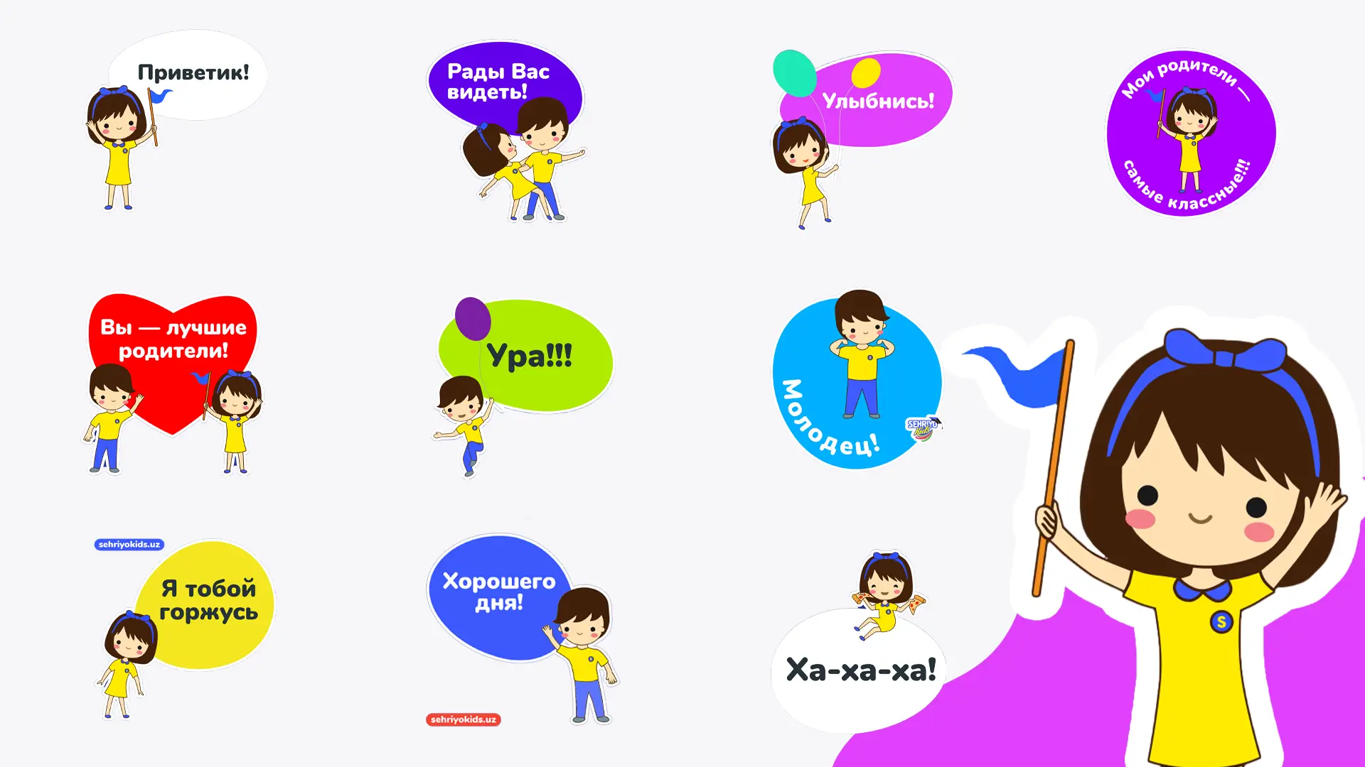 У Sehriyo Kids появился яркий фирменный стиль, который делает бренд дружелюбным и узнаваемым. Визуальные решения работают как в офлайн-материалах (канцелярия, учебные атрибуты), так и в цифровых каналах (мессенджеры, соцсети). «Эльки» стали интересным игровым инструментом, а стикеры — современным способом общения с родителями и детьми.